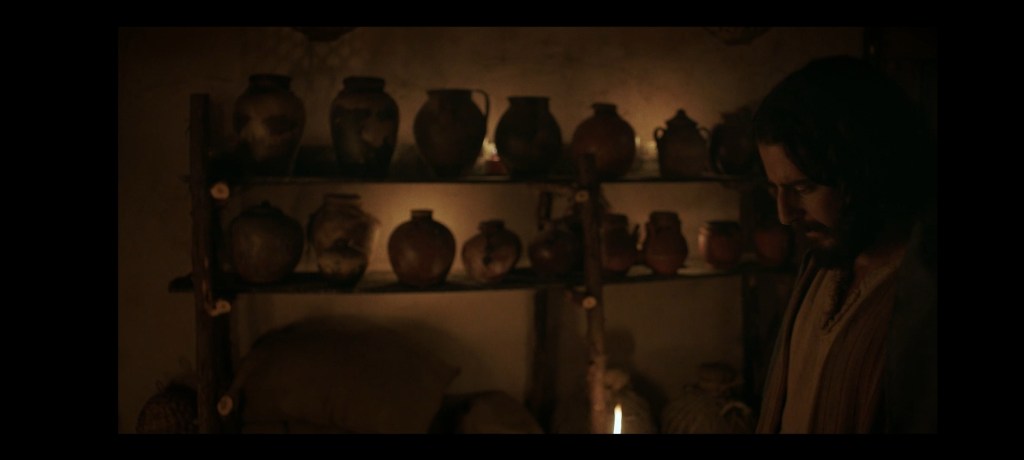 Plötsligt stiger jag upp och går in i köket och fortsätter att se när Jesus säger ”fyll krukorna med vatten”. Då kom Stefan efter mig och frågar förvånat av mig, varför for du in? Jag svarade att det blev så ljust. Det blev lite komiskt det hela och vi började skratta åt situationen. Han ville inte ut för de var så ljust och jag går sedan in när det blev för ljust. Förmodligen såg jag inget på min telefon då solen stack fram mellan molnen. Stefan stryker mig ömt över min arm och vi ser kärleksfullt på varandra. Jag återvänder in i filmen medan han sätter sig i vardagsrummet.